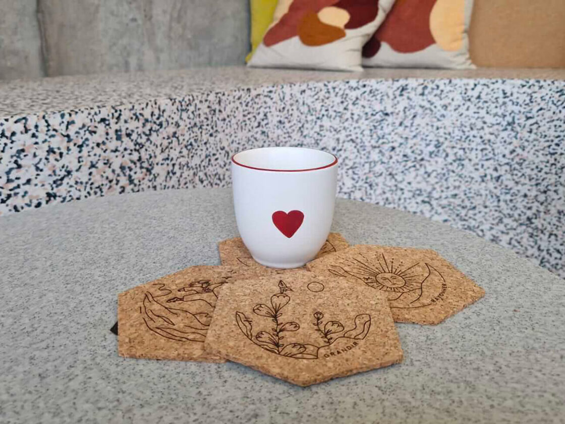 Les sous-bocks en liège se sont imposés naturellement, associés à la convivialité : un apéro partagé, une pause café réconfortante, un bouquet de fleurs qui illumine un intérieur.